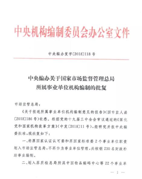 其實(shí)在2018年11月15日中央機(jī)構(gòu)編制委員會(huì)辦公室印發(fā)的文件中第三條明確批復(fù):