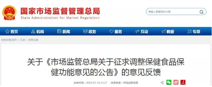 市場監(jiān)管總局關(guān)于征求調(diào)整保健食品保健功能的