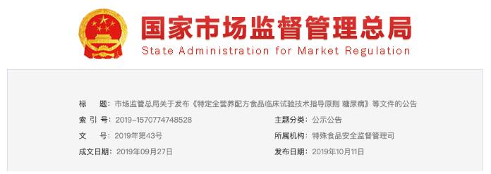 市場監(jiān)管總局發(fā)布糖尿病/腎病/腫瘤特定全營養(yǎng)配